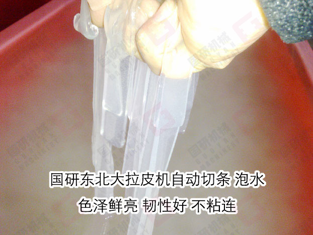 5、該機(jī)生產(chǎn)的拉皮、粉皮厚薄可任意調(diào)節(jié),保全了原料的全部營養(yǎng)成份,味道鮮美,清亮剔透。
