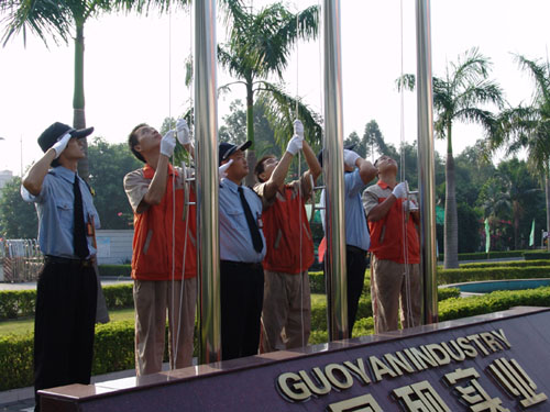 上午8時整,在雄壯的國歌聲中,公司升旗儀式暨運動會開幕式拉開序幕,公司全體員工懷著激動的心情齊集旗下歌唱祖國美好的未來。國旗司旗在公司上空高高飄揚,鮮艷的五星紅旗在初晨陽光的照耀下顯得分外絢麗奪目。