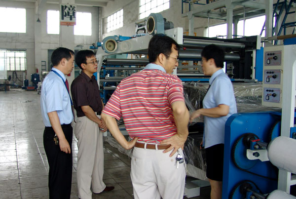 杜黨勇書記一行在公司黨支部書記、副總經(jīng)理王聲躍、副總經(jīng)理陳蓓的陪同下參觀了公司廠容廠貌和生產(chǎn)車間,在參觀過程中,杜書記不時詳細(xì)詢問公司的生產(chǎn)經(jīng)營情況,并仔細(xì)了解各類機器的性能特點,當(dāng)來到公司深入學(xué)習(xí)實踐科學(xué)發(fā)展觀活動的宣傳欄時,杜書記不禁駐足認(rèn)真欣賞起來,連說:很好,辦的不錯。