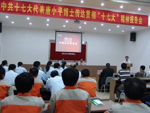 報(bào)告會(huì)上,唐博士暢談了參加十七大會(huì)議的親身感受以及自己對(duì)十七大報(bào)告的理解。整個(gè)十七大報(bào)告是對(duì)過去成果的總結(jié),對(duì)當(dāng)前理論的系統(tǒng)闡述,對(duì)今后建設(shè)任務(wù)的描述,對(duì)未來的努力方向有著明確的指引。唐博士高度概括了十七大精神,認(rèn)真詳細(xì)的向與會(huì)的員工宣講了中共中央在十七大的重要決策和會(huì)議精神。他的報(bào)告極大地激勵(lì)鼓舞了員工的士氣,為國研機(jī)械在今后推動(dòng)企業(yè)科學(xué)發(fā)展,構(gòu)建和諧企業(yè)指明了努力的方向。隨后,天河區(qū)珠吉街黨工委書記黃澤鵬作了總結(jié)講話。