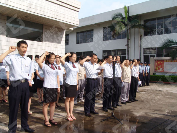 2011年7月1日,國研機(jī)械公司園區(qū)內(nèi)彩旗飄揚、鼓樂齊鳴,到處洋溢著一片喜慶氣氛。公司全體員工在黨支部的組織和工會、團(tuán)支部的協(xié)助下,以升國旗、重溫入黨誓詞、參觀虎門愛國主義教育基地等形式熱烈慶祝中國共產(chǎn)黨誕辰九十周年。