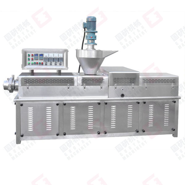 原料(面粉)→加水斷續(xù)攪拌→物料輸送→強制喂料→高溫半膨化擠出→面片冷卻輸送→切條切斷→包裝
